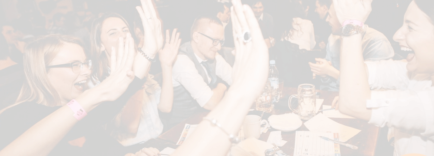 У вас будет свой столик — общайтесь, ешьте, пейте, а мы будем выводить на экраны вопросы. Вам останется только вписывать ответы в бланки и набирать баллы. Побеждает та команда, которая ответила правильно на большее количество вопросов.